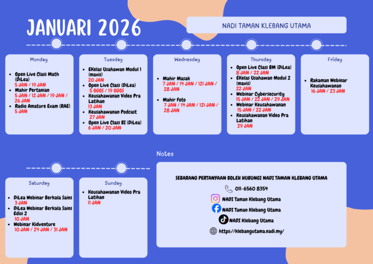 Penutupan NADI Taman Klebang Utama pada 25 December 2025 (Khamis) sempena cuti Sempena Hari Krismas. NADI Taman Klebang Utama akan beroperasi semula pada 26 December 2025 (Jumaat) seperti biasa. Harap maklum