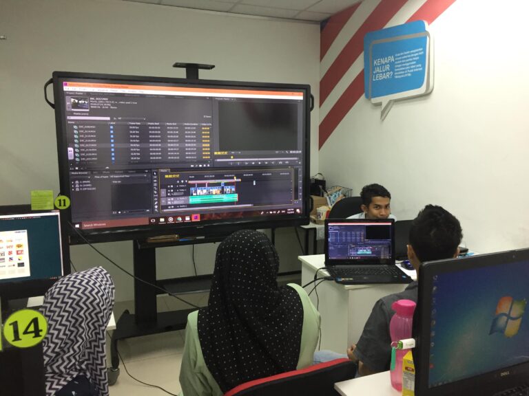 Petugas-petugas Pusat internet Kluster Kinta bekerjasam dengan para usahawan serta komuniti setempat untuk menyunting video yang menarik.