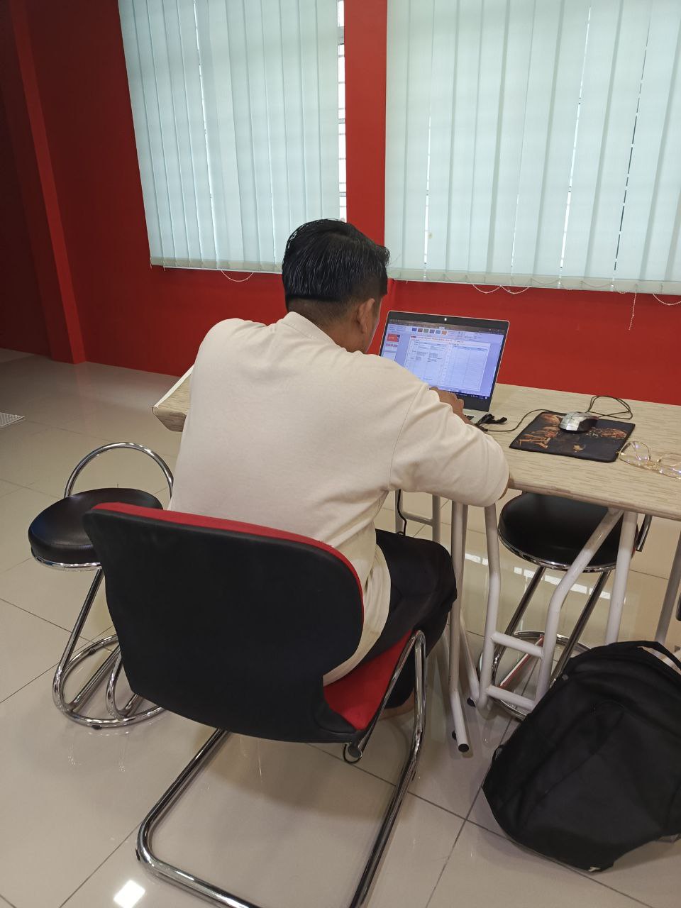 Ahli datang ke NADI untuk menggunakan perkhidmatan printing dan meeting area untuk membuat tugasan beliau.