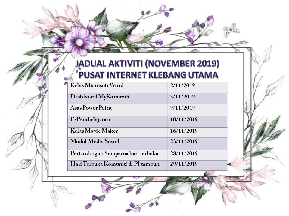 Tarikh : 11 Oktober 2019 Masa : 2.30 ptg – 5.30 ptg Lokasi : Pusat Internet klebang utama Peserta : 6 orang Tujuan Kelas ini bertujuan untuk memberi pendedahan kepada pelajar terhadap microsoftword serta membantu mereka supaya lebih mahir […]
