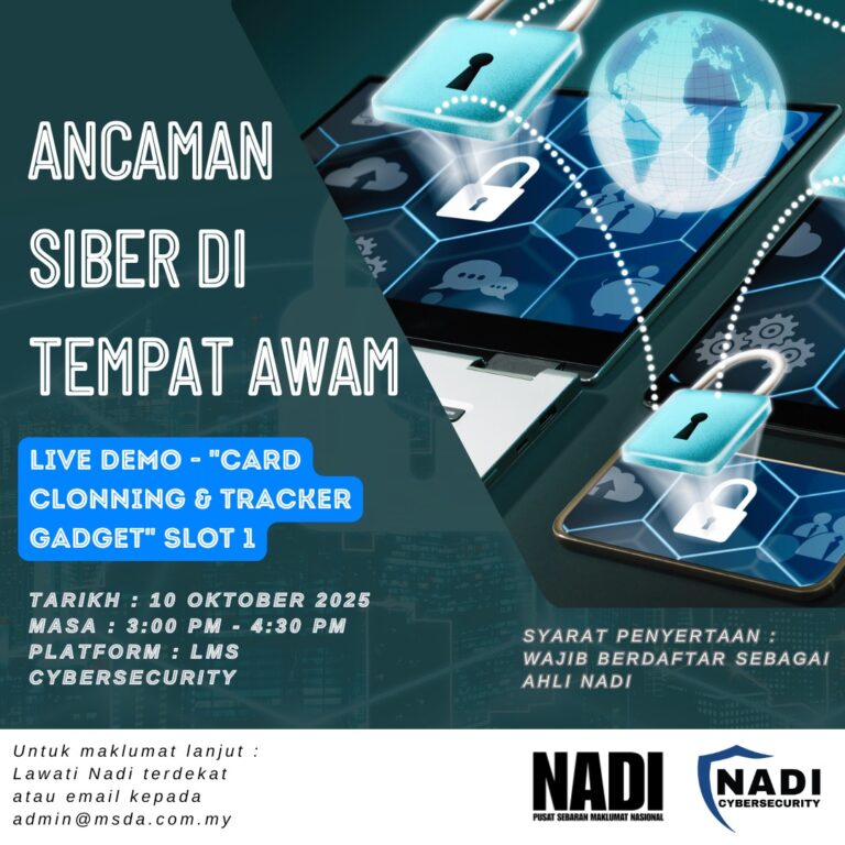 π£ [WEBINAR NADI x CYBERSECURITY] ANCAMAN SIBER DI TEMPAT AWAM LIVE DEMO CARD CLONNING & TRACKER GADGET SLOT 1 π 10 OKTOBER 2025 (JUMAAT) π 3:00 PM β 4:30 PM π» Platform: Zoom π Pautan Pendaftaran: cybersecurity.nadi.my (untuk ahli NADI […]