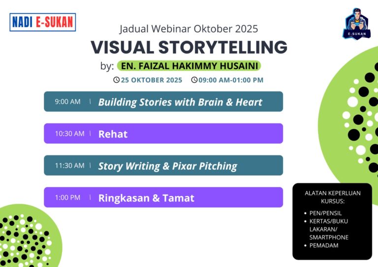 π’ WEBINAR NADI E-SUKAN OKTOBER 2025 Assalamualaikum dan Salam Sejahtera, Dengan sukacitanya dimaklumkan bahawa Siri Webinar Bulanan NADI E-Sukan 2025 akan diteruskan dengan tajuk seterusnya: π¬ Webinar: Visual Storytelling β From Idea to Pitch ποΈ Tarikh: Sabtu, 25 Oktober 2025 […]